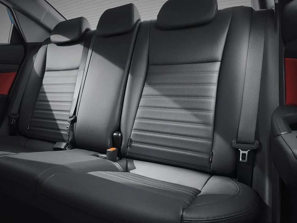 Комбинация кожа / ткань в отделке сидений с красной прострочкой